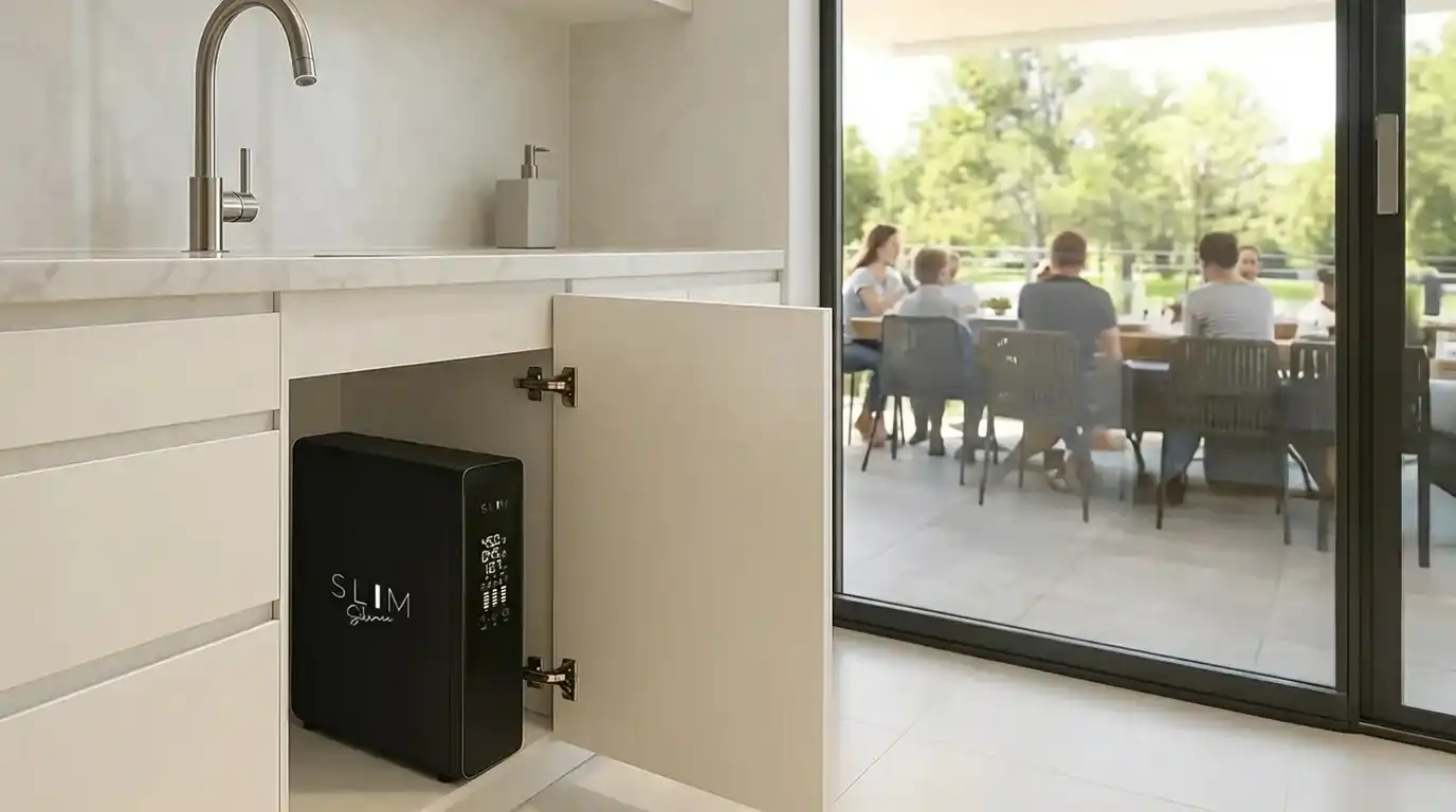 L'acqua del rubinetto e gia buona. SLIM Silence la rende ancora migliore: senza cloro, piu leggera, dal gusto perfetto. A €29,90 al mese.